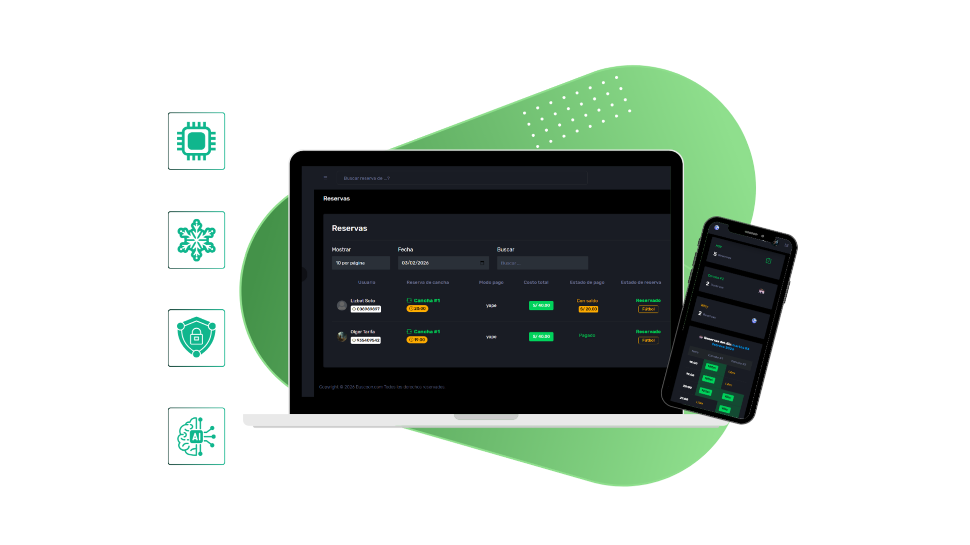 Gestiona múltiples sedes, deportes y roles ilimitados desde una sola cuenta maestra con control total multiplataforma.